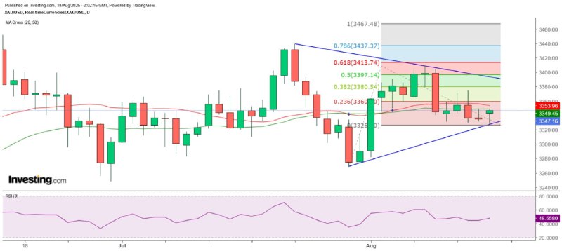 Gold prices are expected to remain supported in the short term as a ceasefire in the Russia-Ukraine conflict seems unlikely in the near future. This week's focus is likely to shift to the Jackson Hole symposium in Wyoming from Thursday to Saturday, where market participants hope to glean information on a potential rate cut in September from the speech of US Federal Reserve Chair Jerome Powell. After hitting a low of $3,323.6 in the Asian session this morning, spot gold has risen by more than $20. Even though a daily low has been formed, $3,375 is still expected to be a key resistance level in the short term. Moreover, on the daily chart, gold remains within a narrowing triangle and a broader sideways range.