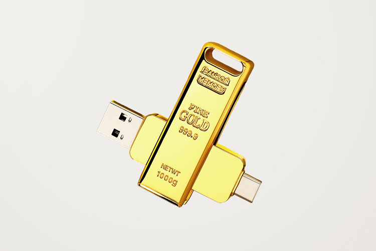 Its unique gold bar design is not only prestigious and dazzling, but also features both USB-A and USB-C ports, allowing for plug-and-play use with mobile phones and computers.