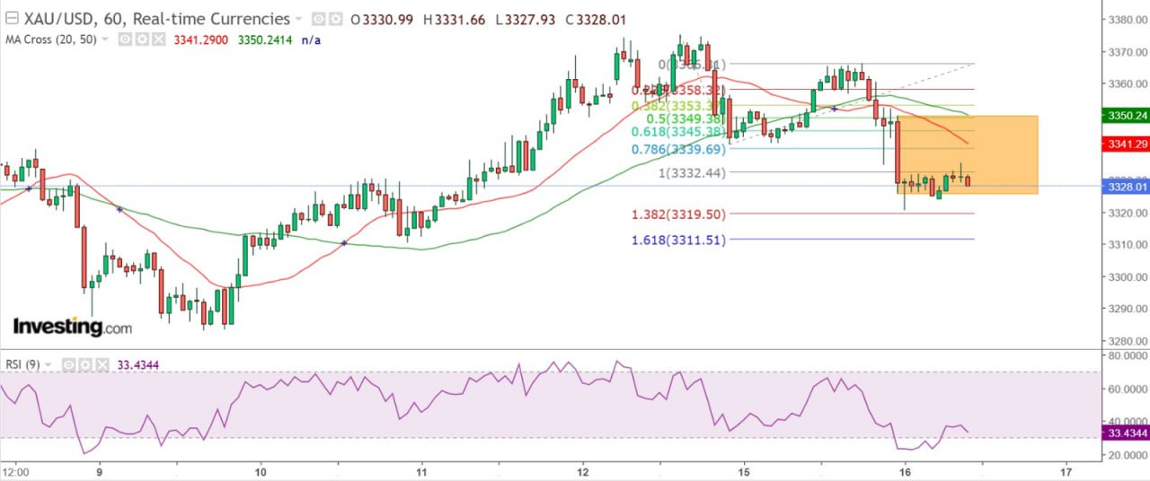 即市而言,金價若在小時圖收在3332美元或以上,日內有望進一步反彈,惟料在3351美元的大陰燭頂受阻,以費波納奇擴展幅度1.382及1.618倍計,金價的日內重要支持位在3319.5及3311.5美元,金價若在PPI數據公布先行下跌,慎防數據公布後大幅反彈。