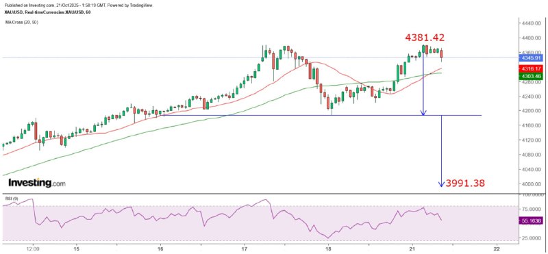 《金價小時圖呈大型雙頂》21/10/2025 9:58 完稿