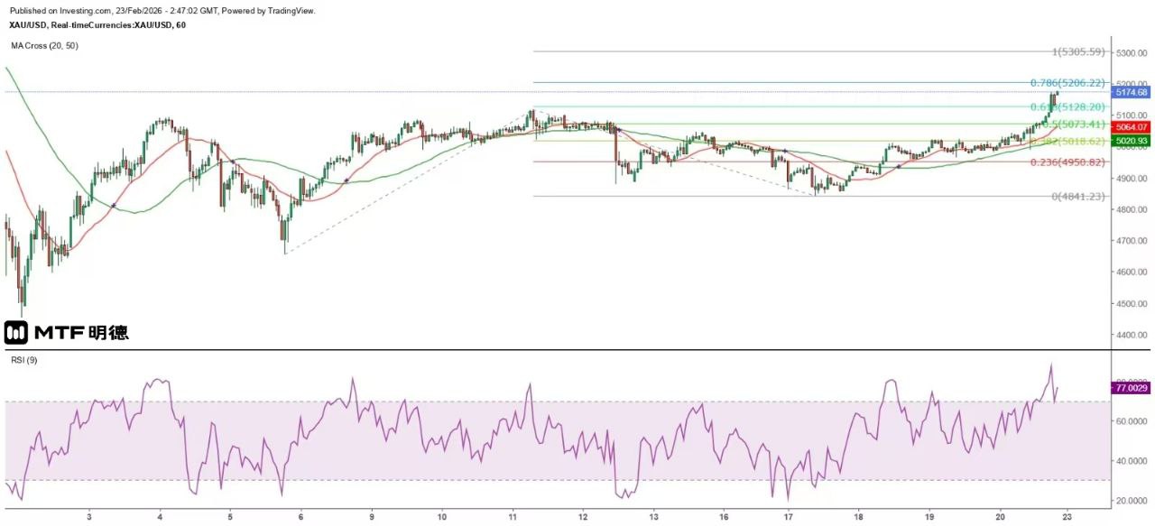 《金價日內傾向逐試高位》23/2/2026 10:45 完稿