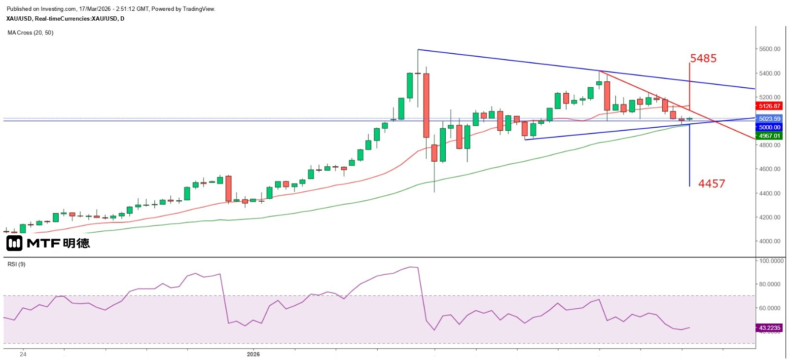 《金價5000美元再成強力支持》17/3/2026 10:48 完稿
