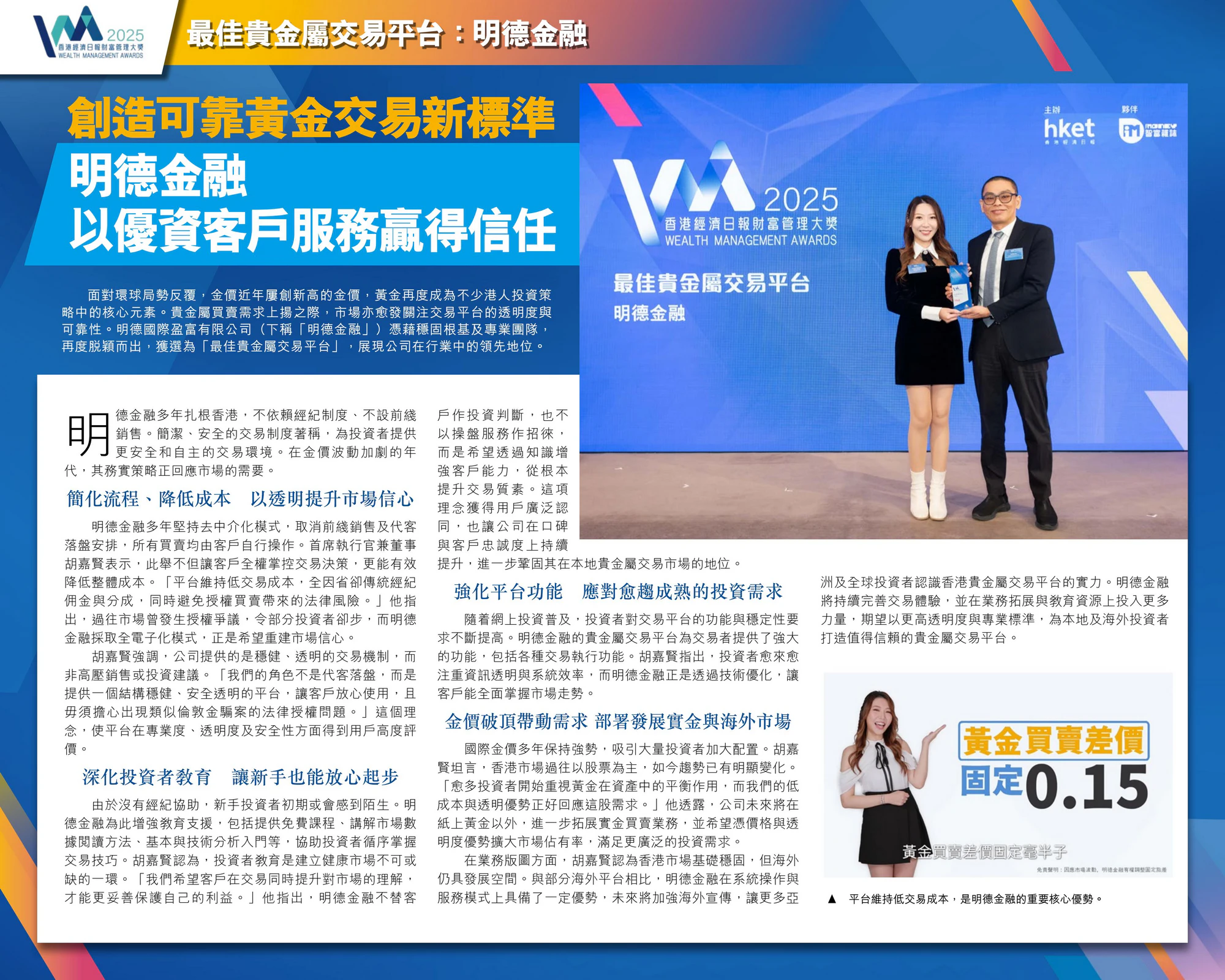 香港經濟日報-2025最佳貴金屬交易平台獎