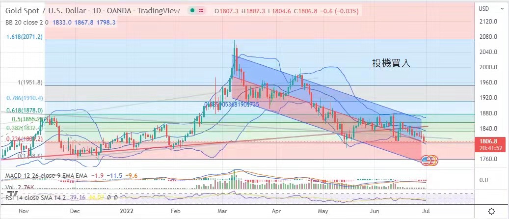 It shows that inflation has an opportunity to peak, and the price of gold has continued to decline, reaching a low of $1,802.8, and finally closing at $1,807.3, falling by $10.5. This week, it has been falling for four consecutive days.
