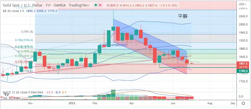 The price of gold was only over $10, the highest price was $1814.4, the highest price was $1804, and finally it fell by $2.4 to $1807.1.