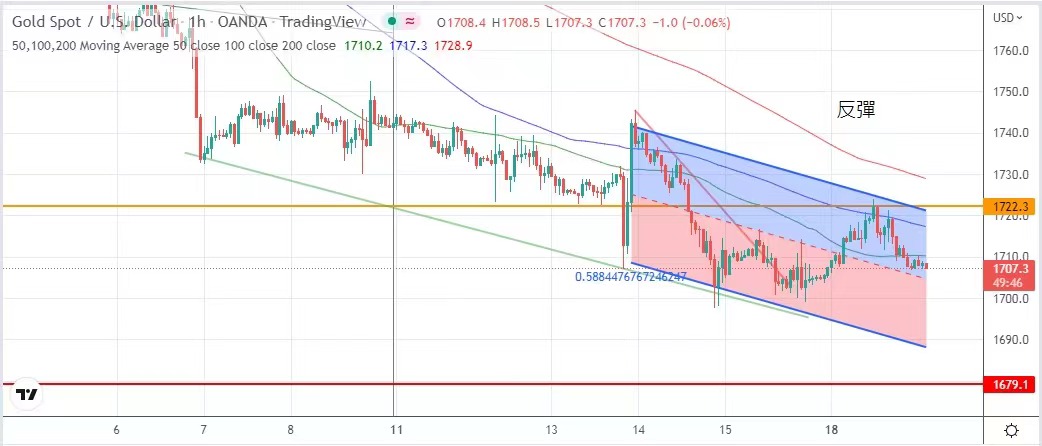 Later, the gold market suffered a head-on blow during the rebound. The lowest price of gold was 1706.1 yuan, and the highest price was 1724 yuan. Finally, it closed at 1709.9 dollars, only rising by 2.4 dollars.