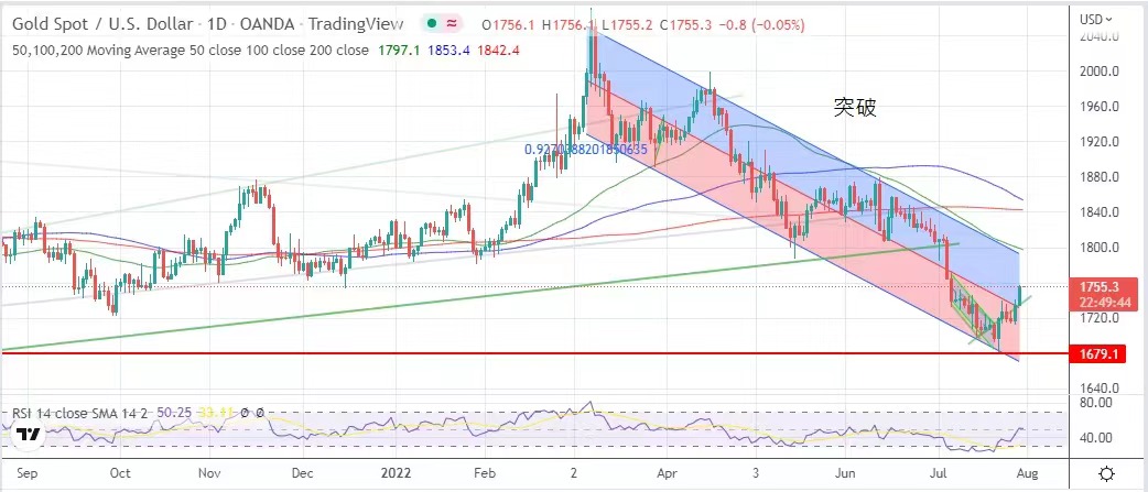 The recession has also weakened the strong performance of the US dollar and contributed to the upward trend of the gold price. The gold price exceeded US$ 1,750 yesterday, which is testing whether it can take another step or make a false breakthrough.