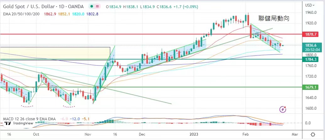 The market is worried that the Fed will expand the pace of raising interest rates, and the US dollar index will return to 104. The gold market is under pressure, with a minimum of $1,830.3 and a maximum of $1,843.9.