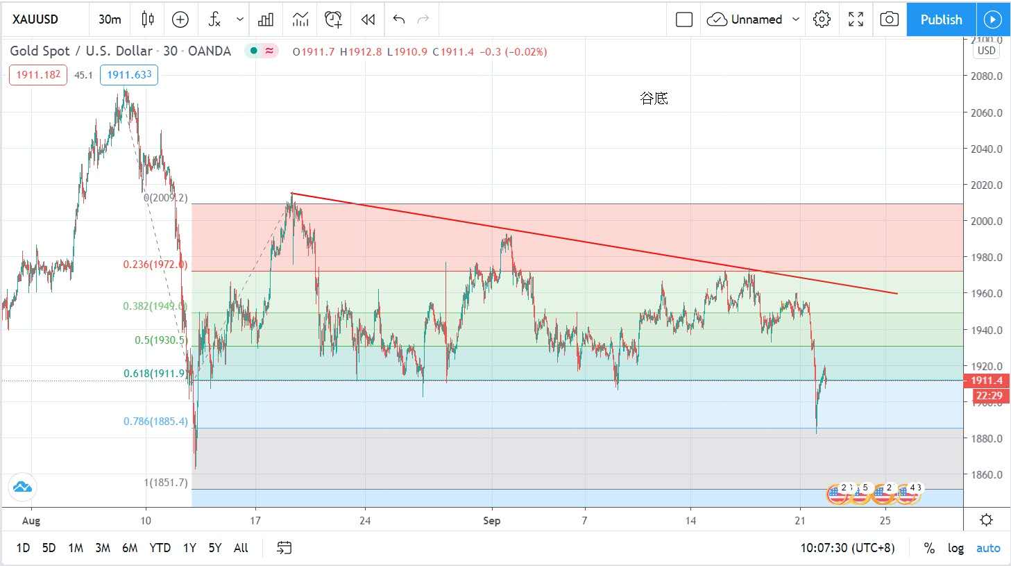 Under people's trampling, the lowest price of gold has reached $1,882 per ounce, setting a new low this month. Compared with yesterday's high of $1,954 per ounce, it dropped sharply by $72, and finally closed at $1,912 per ounce, down by $32.