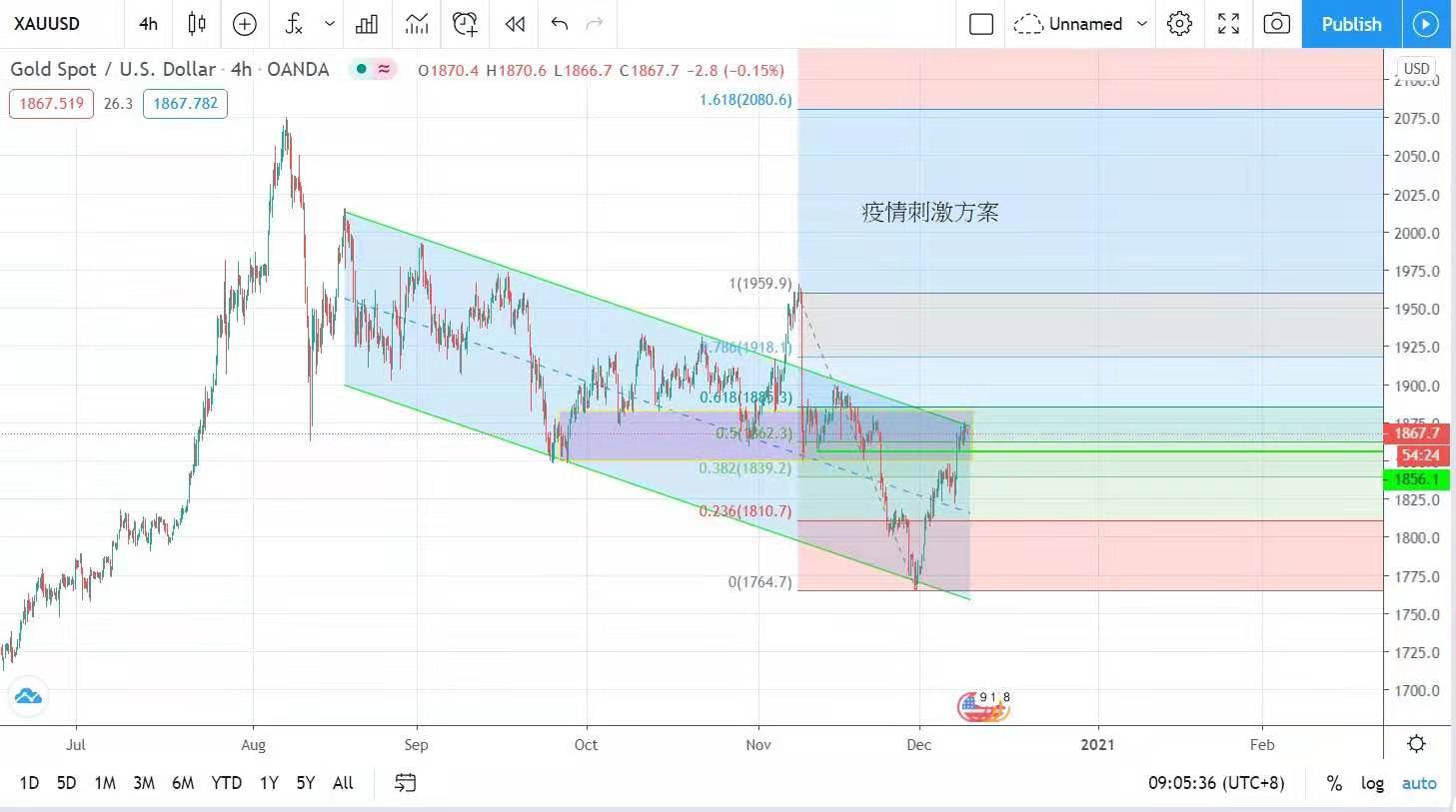 The large-scale post-epidemic economic stimulus plan in the United States is expected to be launched, and the gold price will play its anti-inflation and anti-currency depreciation characteristics. Today, the price of gold may oscillate, with the main volatility of 1856-1878 dollars.