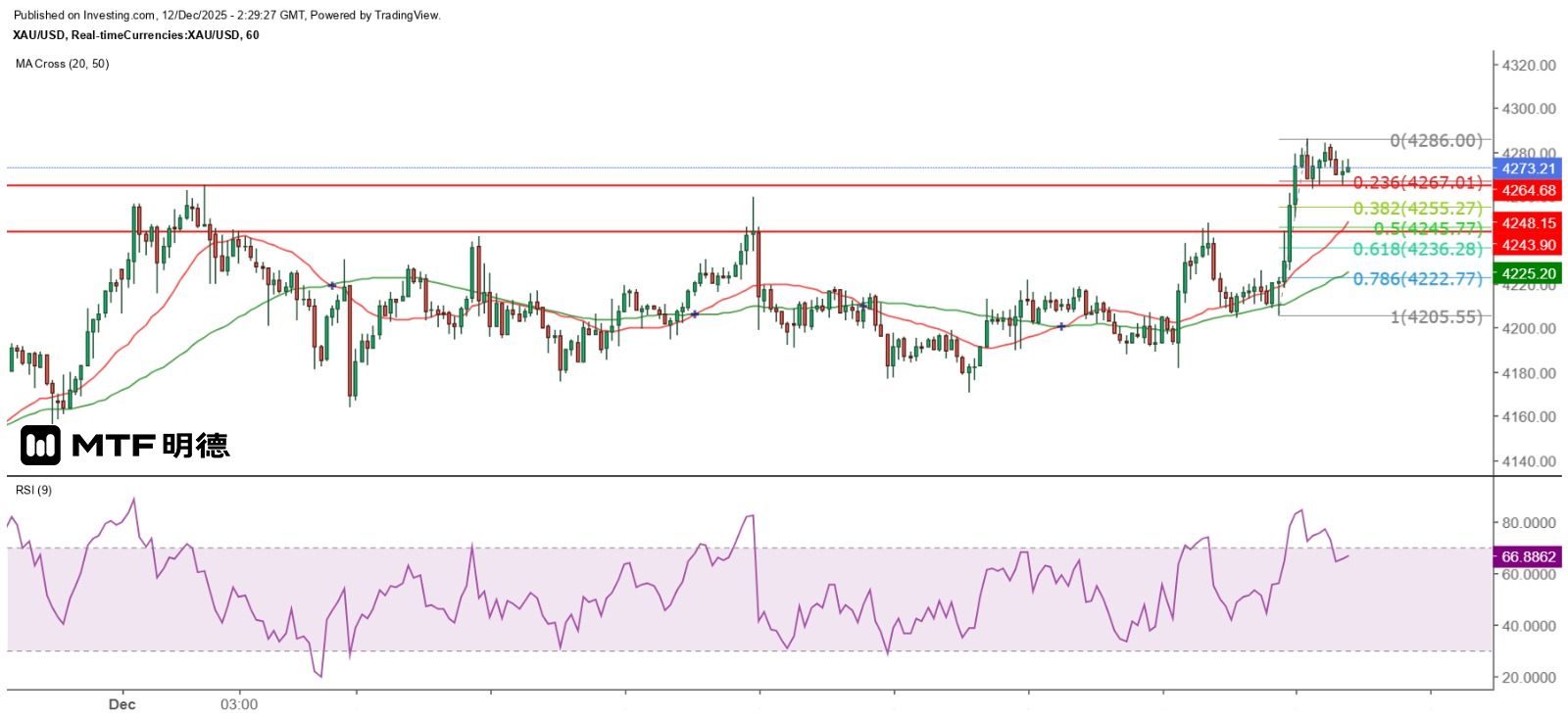 Yesterday, the gold price performed stronger than expected. Although the spot gold price dropped sharply from the Asian market high of $4,247.79 to a low of $4,204.42 at the opening of the European market, it gradually rebounded. However, it was blocked at the high of $4,226 in the midday of the European market. At the opening of the New York market, it fell to a low of $4,205.55. But just like at the opening of the European market, the gold price turned upward within one hour. Subsequently, the upward trend was intense. Not only did it break through the Gann angle at $4,260 and the head and shoulders bottom measurement target of $4,268 on the hourly chart, but it also reached the short-term resistance zone of $4,286 in the early afternoon of the New York market. The gold price then closed with a long bearish candle on the hourly chart, which was a piercing pattern.