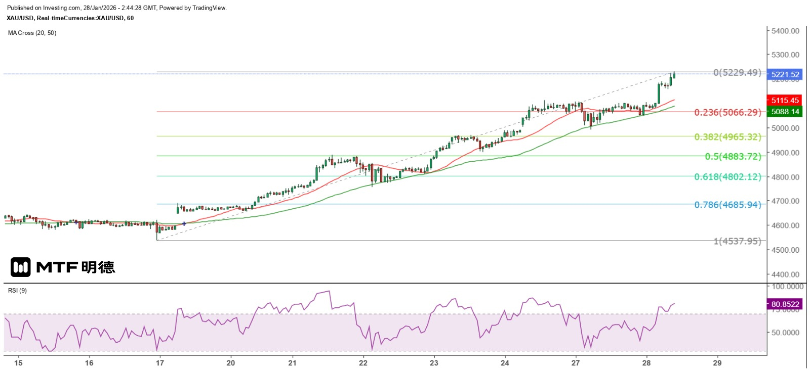 However, given the current trend of gold prices, it is expected to maintain a fluctuating upward movement in the short term. Investors should follow the trend and not merely act on the "buy" signal, as a decline in gold prices can also create considerable profit opportunities. From the perspective of the hourly chart, the previous peak of $5,111.11 has become a strong support level for short-term adjustments, with the ultra-short-term support level at $5,210. If this level is held, it is expected to further challenge $5,260, where significant resistance is anticipated. The 50SMA on the hourly chart (currently at $5,088) is a key trend indicator. Once it is breached, it indicates a reversal of the upward trend since January 16th, and gold prices are expected to undergo a deeper adjustment. Based on the current range, it is expected to find support at $4,883.72.