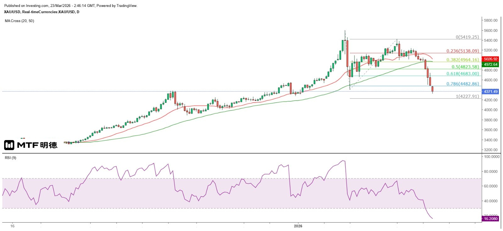 "Gold Price Enters Technical Bear Market" 23/3/2026 10:44 Completed
