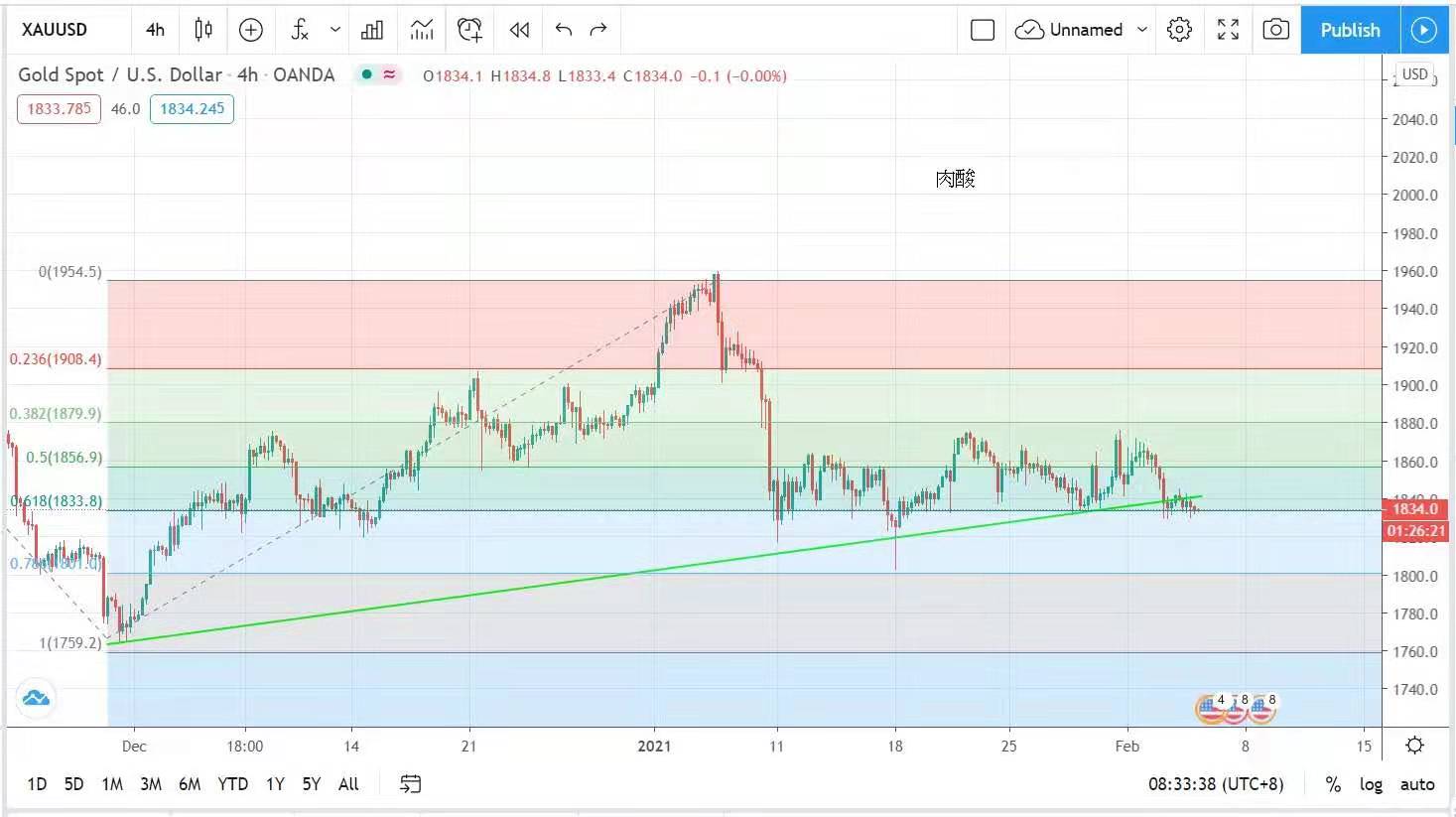 However, the trend was sour and fell below the recent support line. It is expected that the market will still go up and down today, but the top buying is not active, which makes it difficult to get rid of the weakness. Today, the suggested volatility is between 1828 and 1841 US dollars.