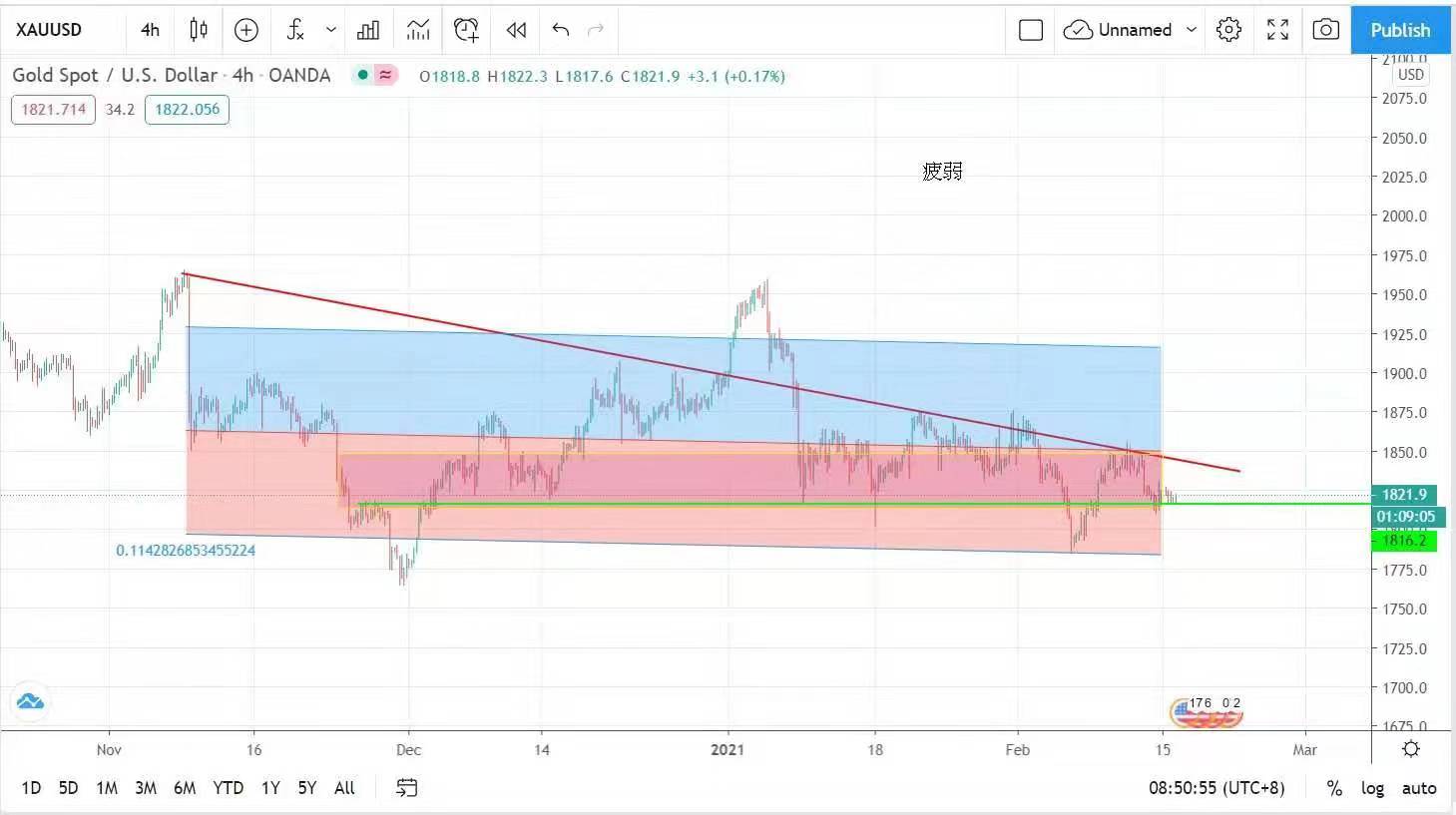 However, the gold price is still weak. It is expected that the gold price will still be consolidated between 1800 and 1840. It is necessary to keep the 1800 mark before making a breakthrough. Today, the suggested volatility of yesterday is retained, that is, between 1816 and 1831 US dollars.