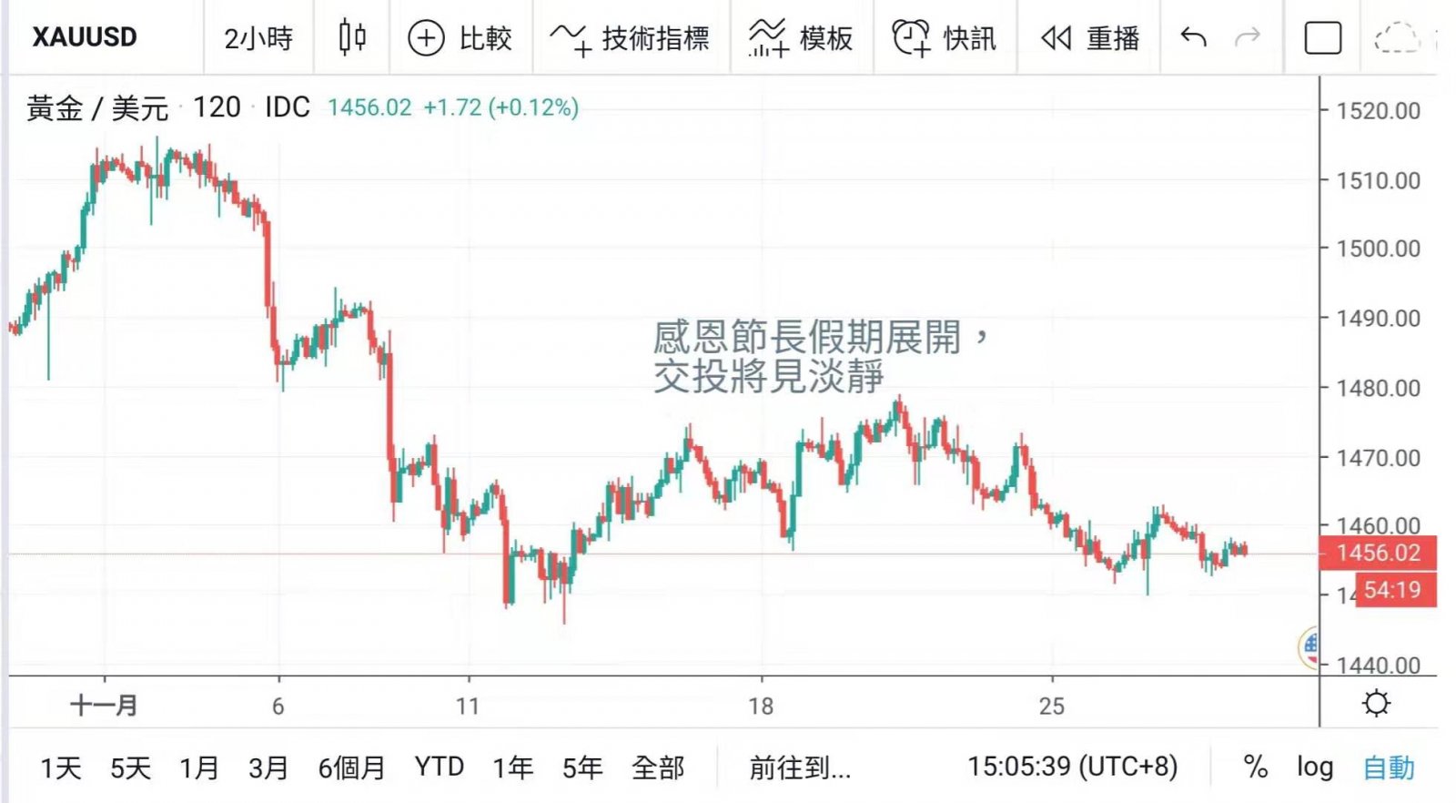 美國感恩節假期展開,今晚起市況將會較為交投疏落,由於未有經濟數據公佈,