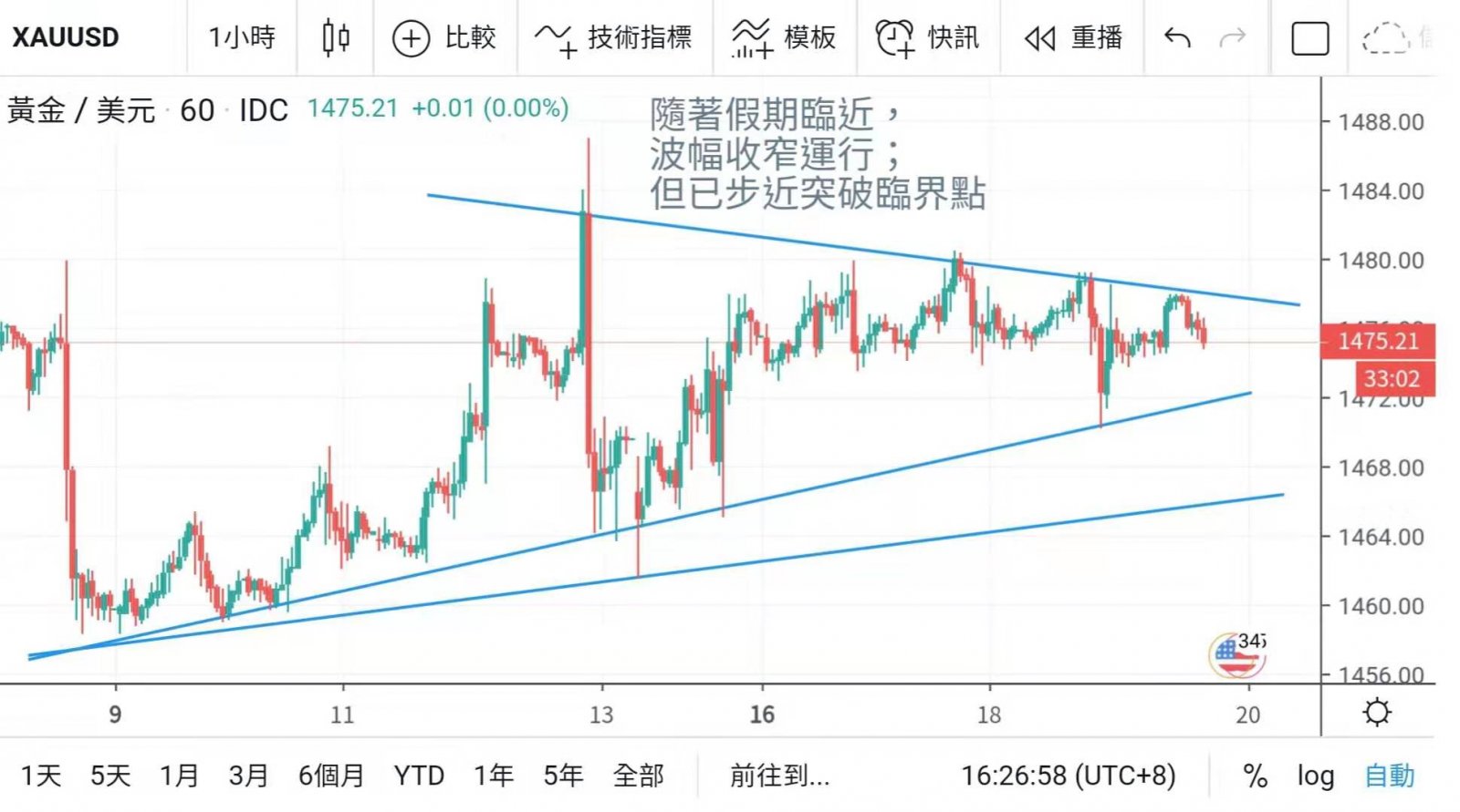 1480關口仍是大型基金較注視的技術阻力,必須有效突破才能延伸金市的升勢,