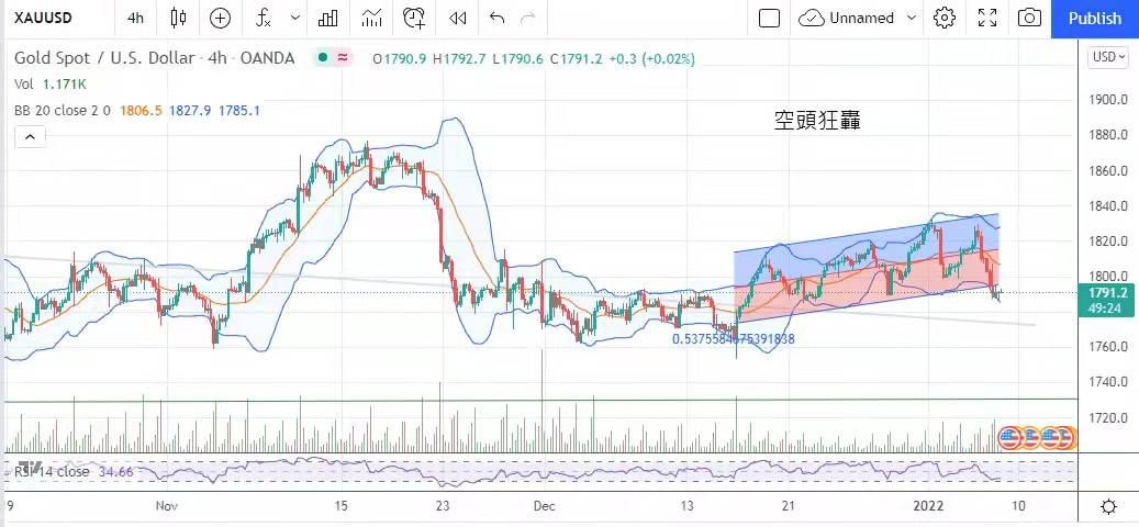 Yesterday, after the gold price opened slightly higher to $1811.6 in Asian session, it was bombarded by bears. Although the bulls tried to fight back after falling below $1800, in the end, the national debt raised interest rates in advance by the Federal Reserve in ten years.