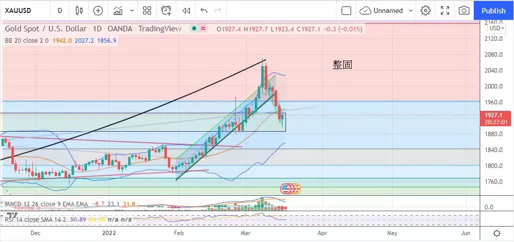 The gold market fell first and then rose, with the Russian and Ukrainian sides reserved to continue talks next Tuesday, the market hopes that the Russian and Ukrainian war can end peacefully under some terms, gold has been under pressure, but the market to observe the Move of the Federal Reserve, bears did not