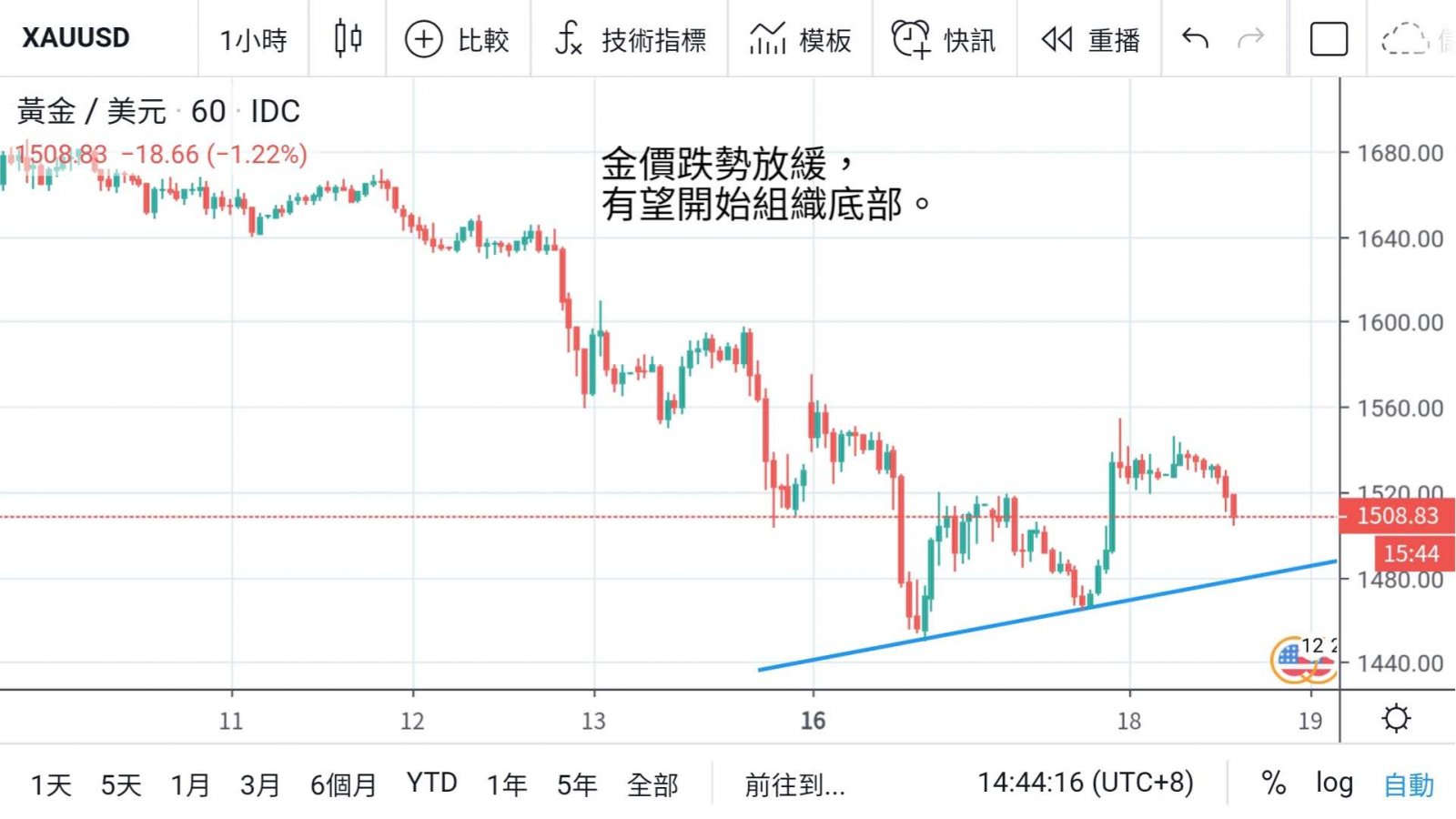 美元亦向好,但金市低位实质买盘支持下,未有再下试新低,反而大幅反弹,并重新企稳1500美元关口。