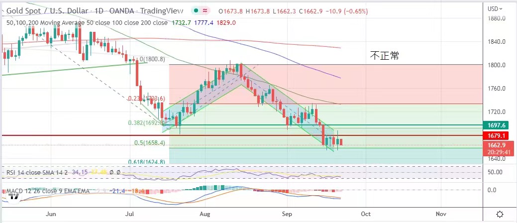 事将升级,避险资金早段推升金价,美联储在今早凌晨公布议息结果,再次提息75点子,金价一度急挫至1653.9美元,