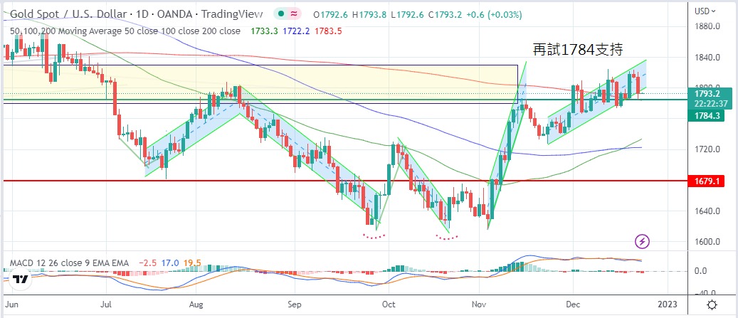 金价最高见1820.5美元,最低见1784.9美元,以1792.6美元收市,跌22美元。