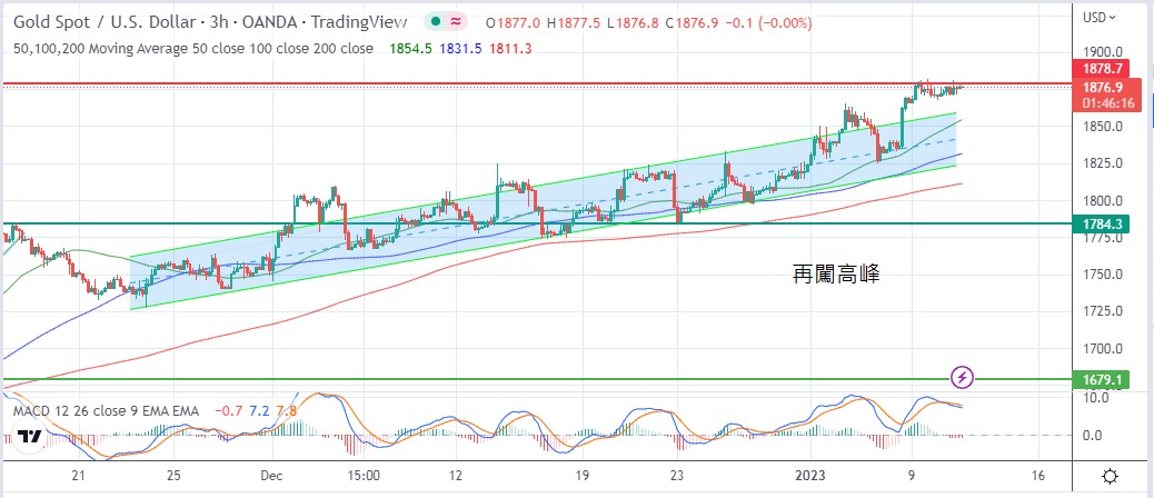 市场关注昨晚联储局主席鲍威尔在昨晚的讲话,但他没有对联邦基金利率作出任何评论,市场松一口气,美元稍为回软,金价向上修正。金价冲击1900美元只是时间性问题,三小时图出现小圆底,今日再创本年高位可期。今日保留昨日建议波幅1868美元至1888美元。