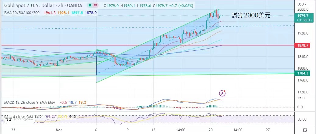 金价曾急冲超过2000美元,上涨至2010美元,但之后金市大幅调整逾44美元,大幅回吐至1966美元,但市场对