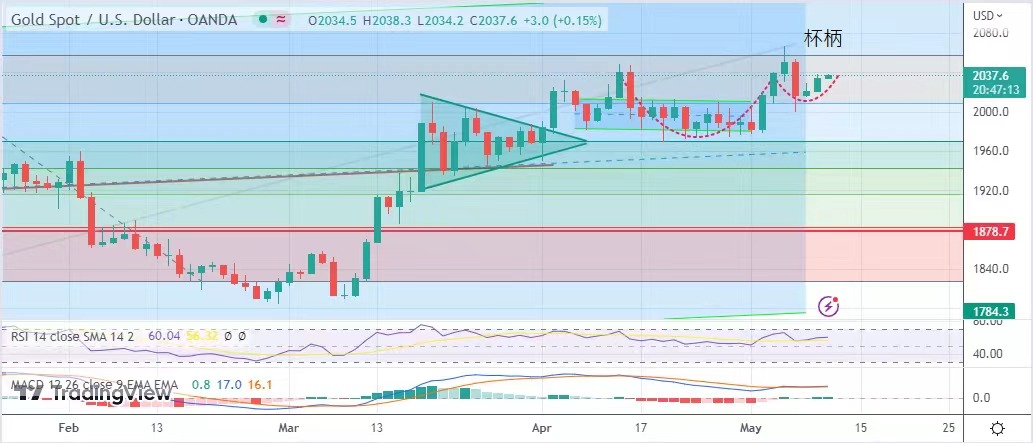 长会面未有结果,金价最高见2037.7美元,最低见2018.6美元,最终以 2034.5美元收市,升13.1美元。