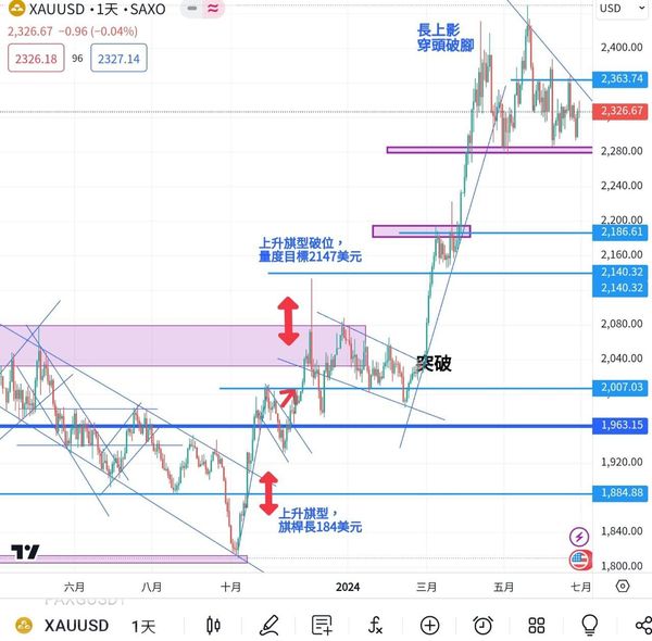可惜升势无以为继,仍陷于图表的震荡区间,继续上落市发展。展望本周,美国将公布劳工市场数据,及周中会公布6月议息会议记录,当中若披露美联储官员更担心通胀情况而推迟减息周期,恐对金价不利。市况点睇,不妨互相参考一下。