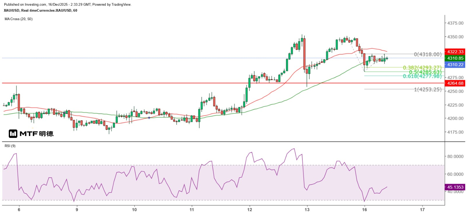 《金价呈双顶短期沽压增》16/12/2025 10:32 完稿