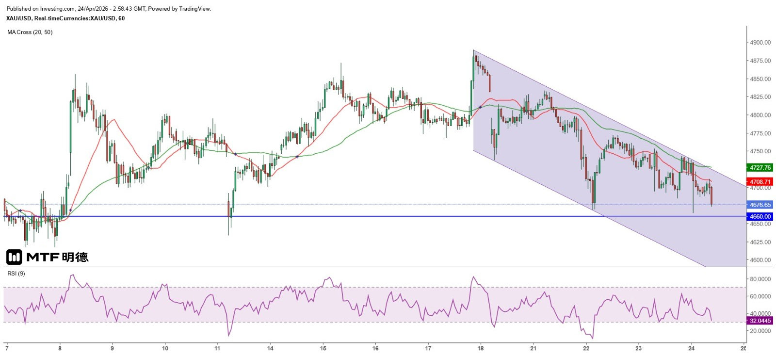 《金价短线反弹料仍受制50日线》24/4/2026 10:55 完稿