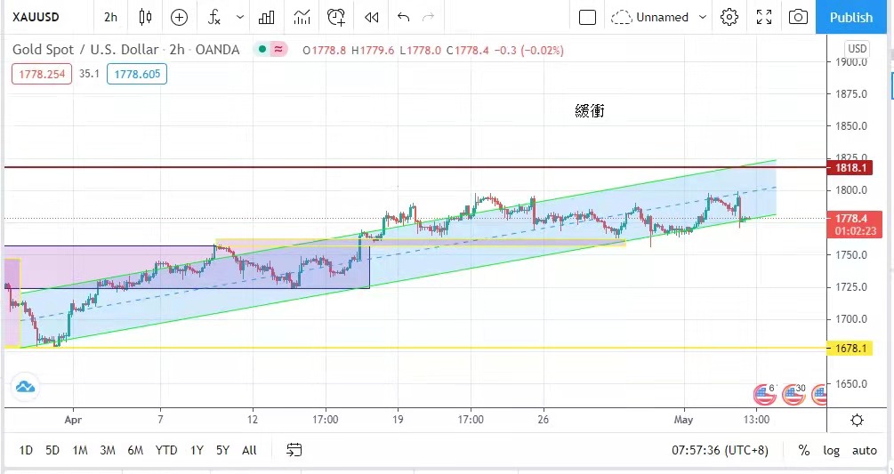 进入欧市,美债10年期美债孳息率急跌至1.567%,为4月26日以来最低水平,金价再趁势再冲1800美元关口,但去到最高1799美元又再次无功而还。