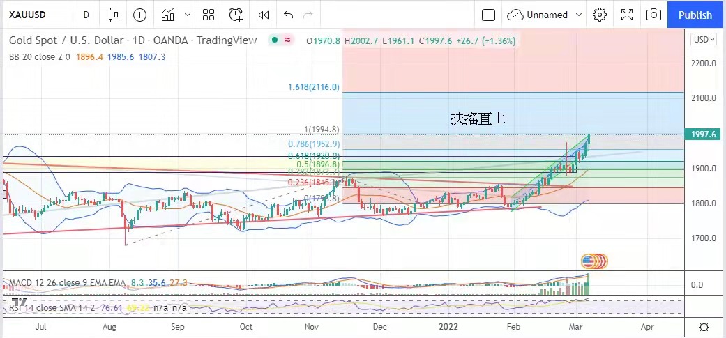 理关口;估计除非俄乌战事冷却,金市将会与其历史高点越拉越近,而每次下调都是为破顶作准备。今日建议波幅1987美元至2014美元。