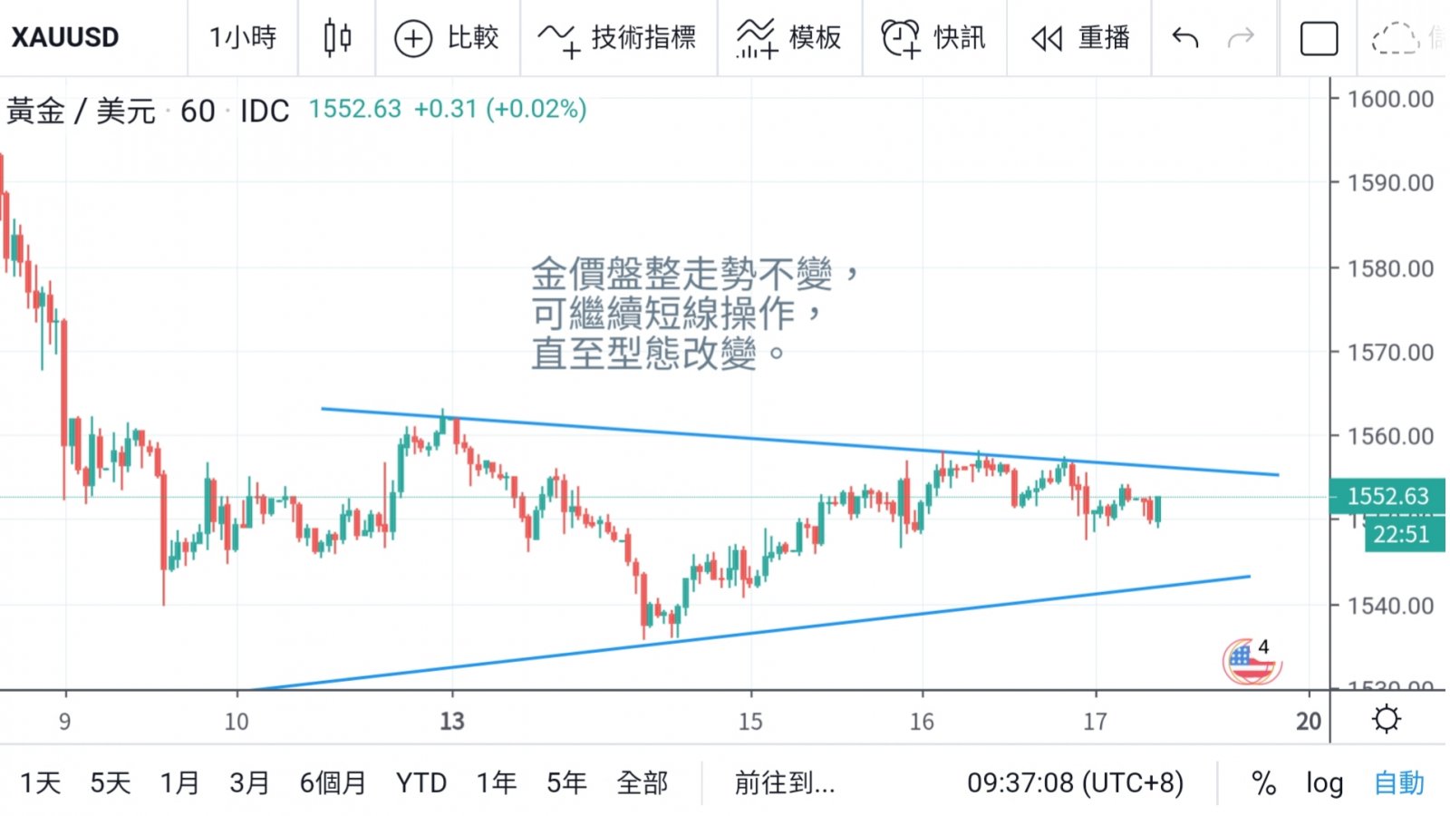 因此见金价无意挑战1560关口,下方回落亦未持续沽压,区间交易,非常适合短线炒作。