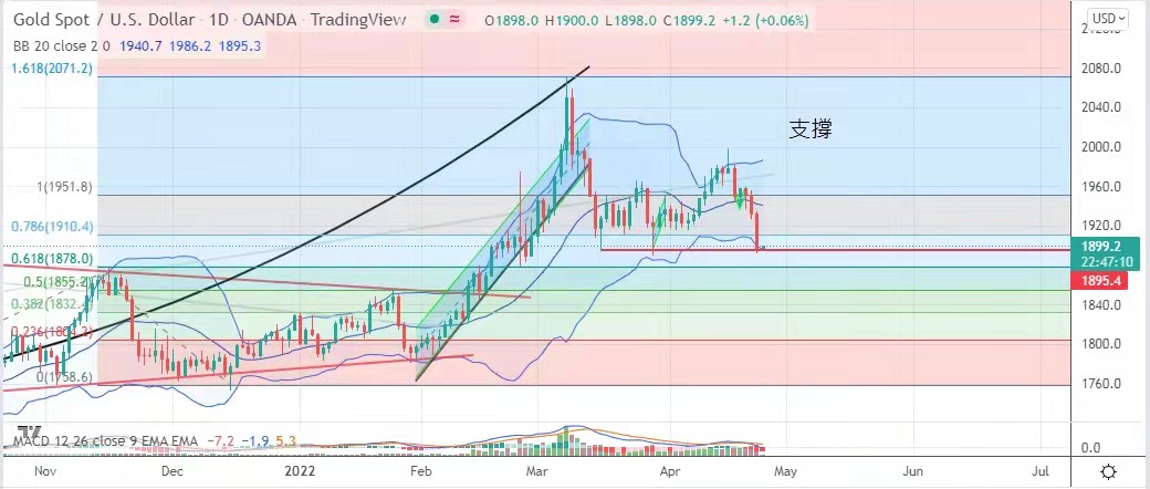 行,並失守1900美元關口。金價最高見1934.5美元,最低見1891.6美元,最後以 1898美元收市,跌34.4美元。