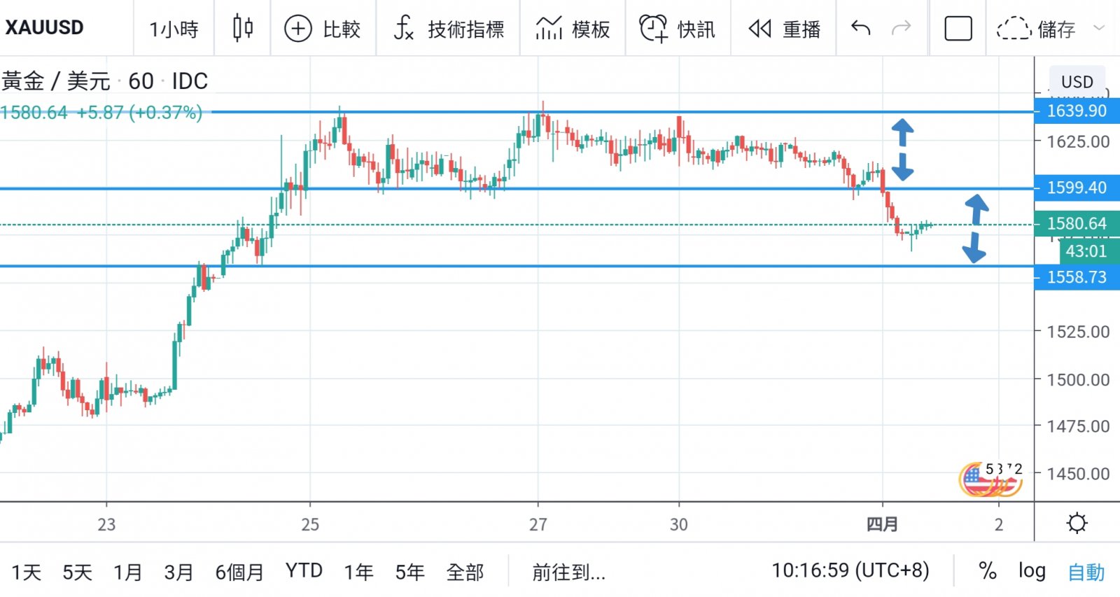 技術上,金價失守早前的整固區間,短期將出現積弱表,預期金價即市難以反彈回1600關口。金價上週普遍在1595至1630之間整固,