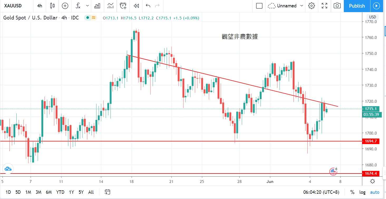 昨天金價反彈並收回一半失地,最高做1722,,收報1713。紐約期油收市報每桶37.4美元,微升0.1美元。投資者要注意今晚美國公布非農就業報告。