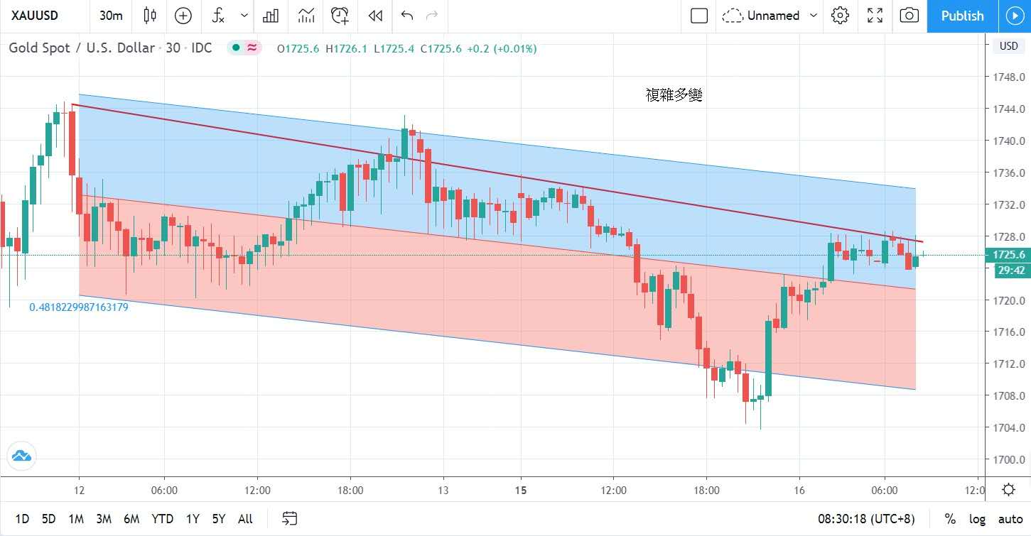 金價昨日大幅震盪,高低波幅達30美元。金價在亞洲開市時段便開始下跌,最低在美市開始曾跌至1704美元1盎司,收報每盎司1725美元。