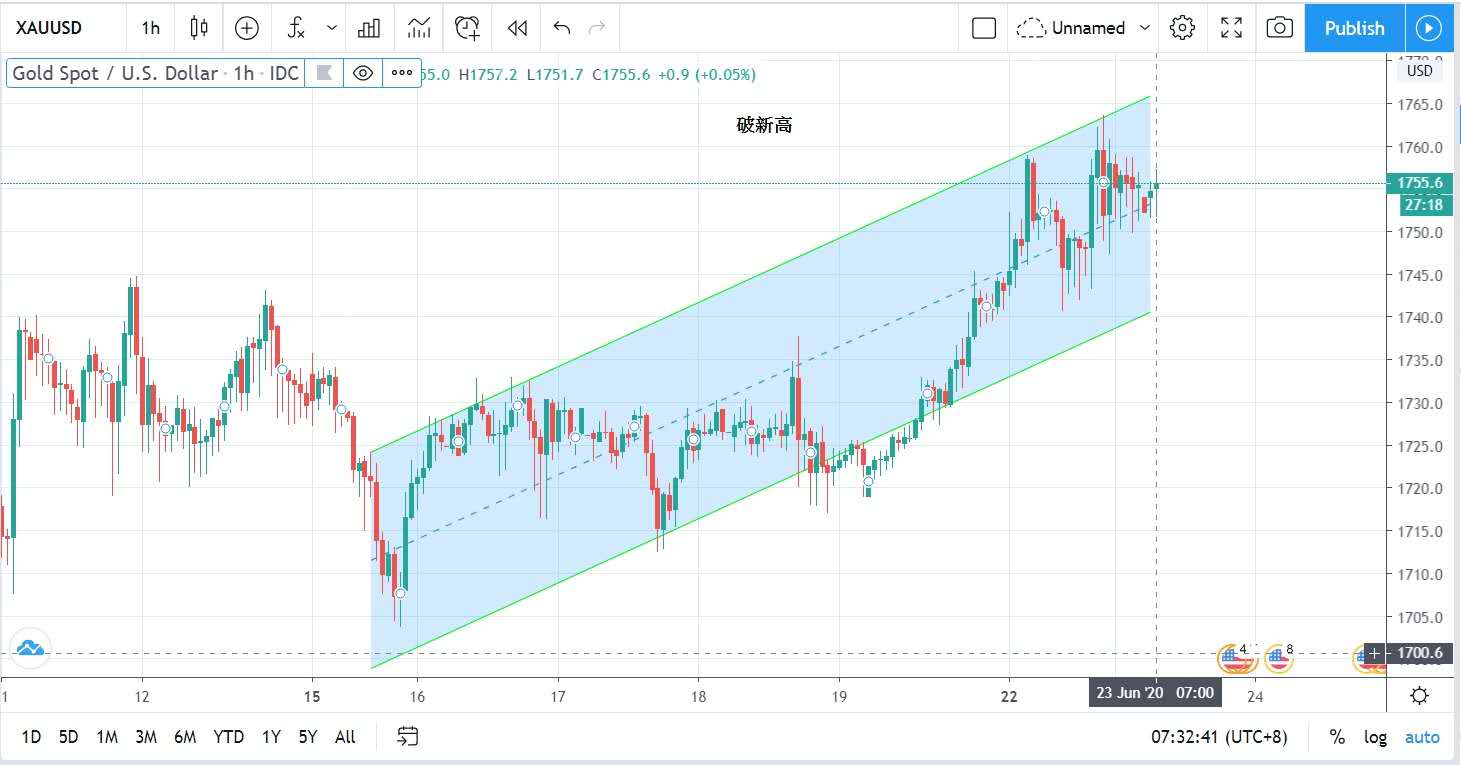 金價昨日開市如入無人之境般升至1759美元。獲利盤將金價回推,報收每盎司1754美元。金股油皆升,原油期貨價格繼續上升,收報40.3美元1桶。
