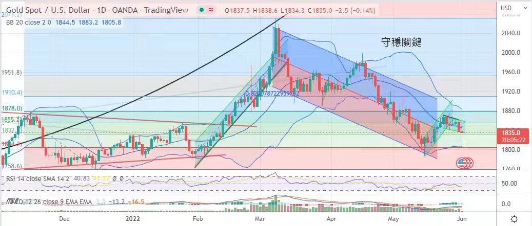 在1840美元的韌力,金價在1832美元變得更關鍵,跌破則可能要點再試1800美元的支持。今日建議波幅1830美元至1846美元。