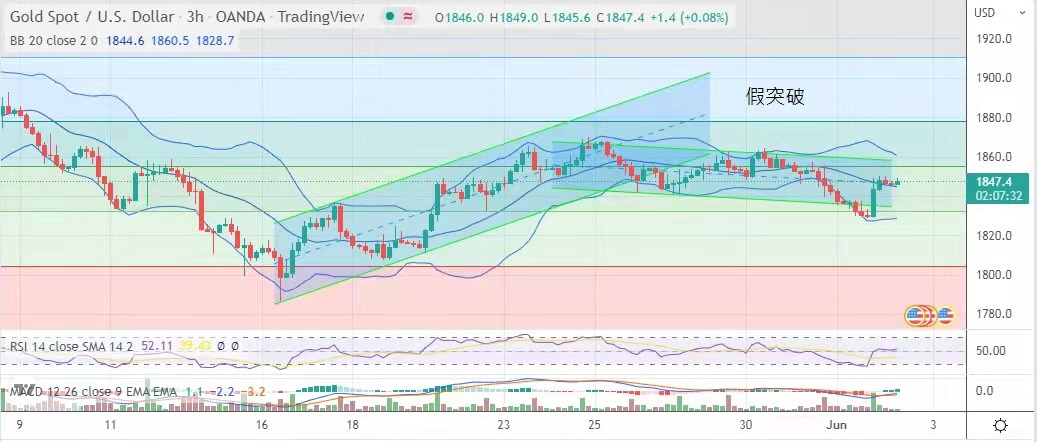 提前加息,這使市場對美元的強勢期望稍為收歛,金價昨日假突破,曾一度跌穿1830美元,隨即急速反彈至1850美元。金價再度進人1840至1870