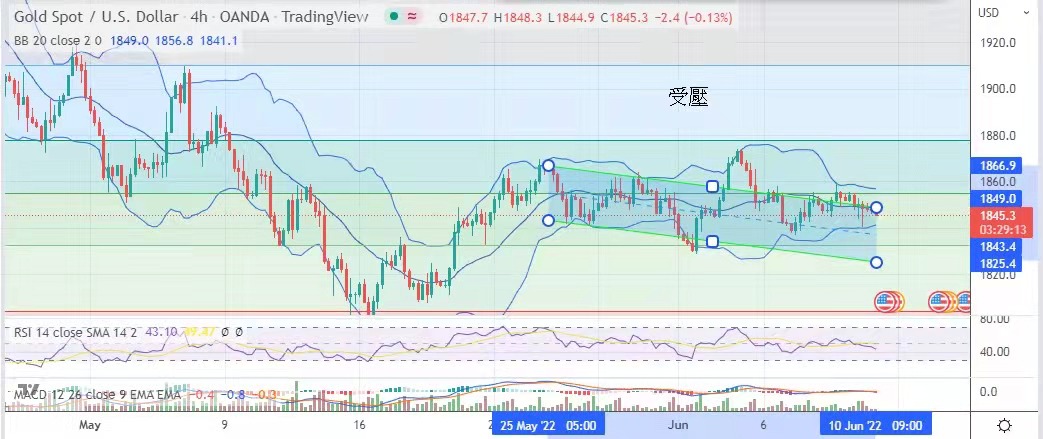 顯受壓,市場將關注今晚揭盎的的美國核心消費價格指數;金價仍將進在1830至1870美元之間震盪,今日建議波1838美元至1852美元。