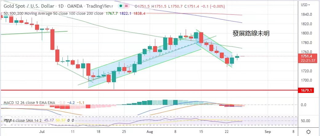 經濟前景的評論。金市表現亦相對平穩,高低波幅不足14美元,金價最低見1742.5美元,金價最高見1755.9美元,以