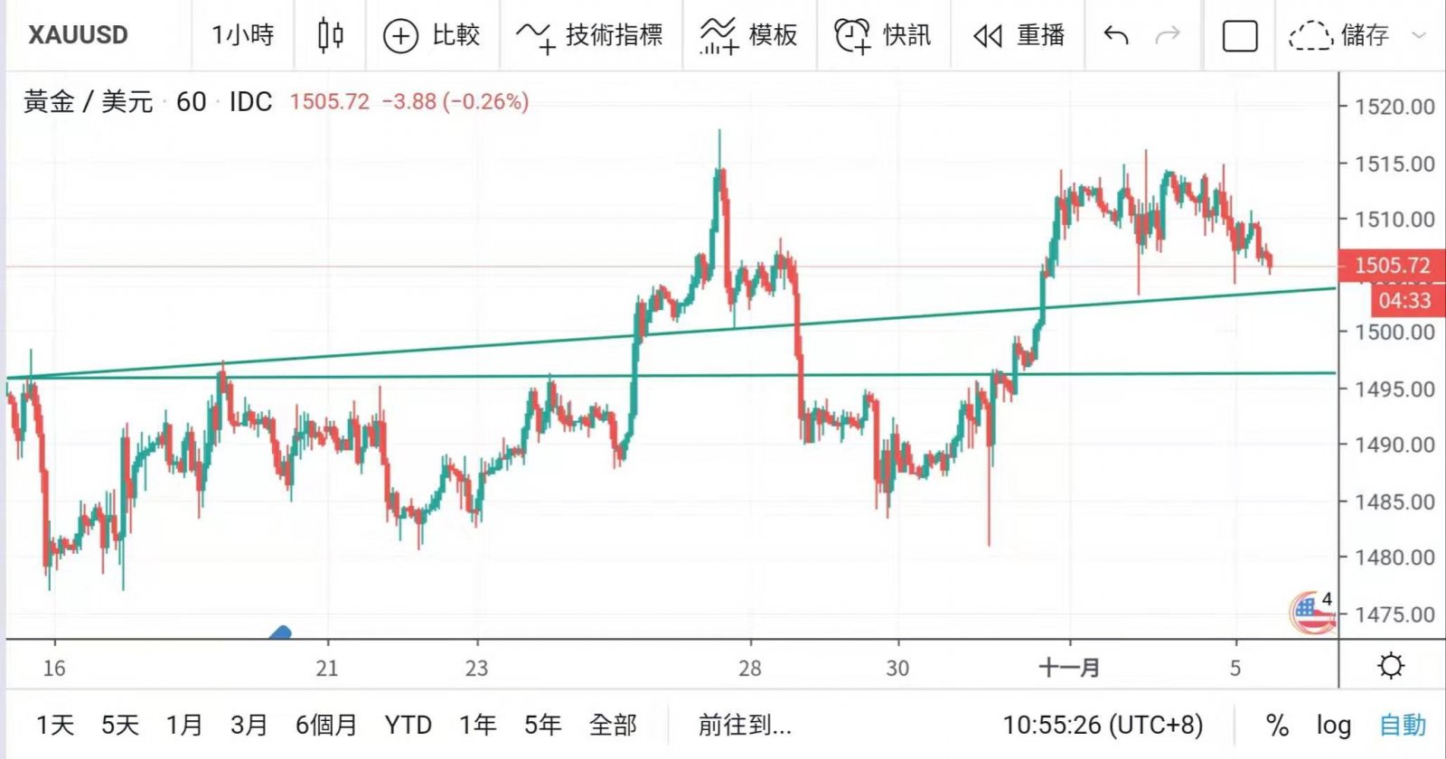 金價走勢亦與歐幣同步,下方跌至上周末的低位1504美元始作反彈;