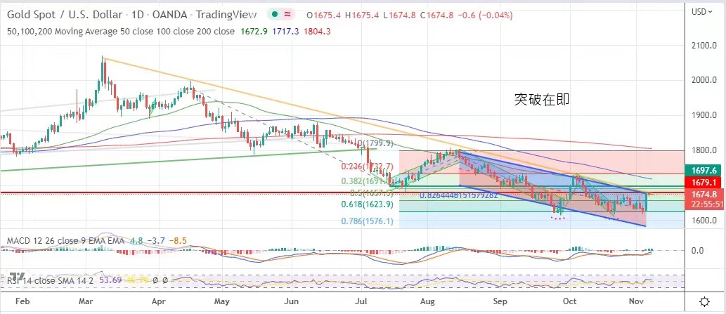時間的通脹數據。看走勢,金價應可突破向上。今日維持昨日建議波幅的1670美元至1690美元。
