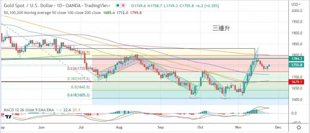關口,金市單邊上升,最高見1758.7美元,但美國假期在即,市場表現不活躍,最後以1755.8美元收市,升6.2美