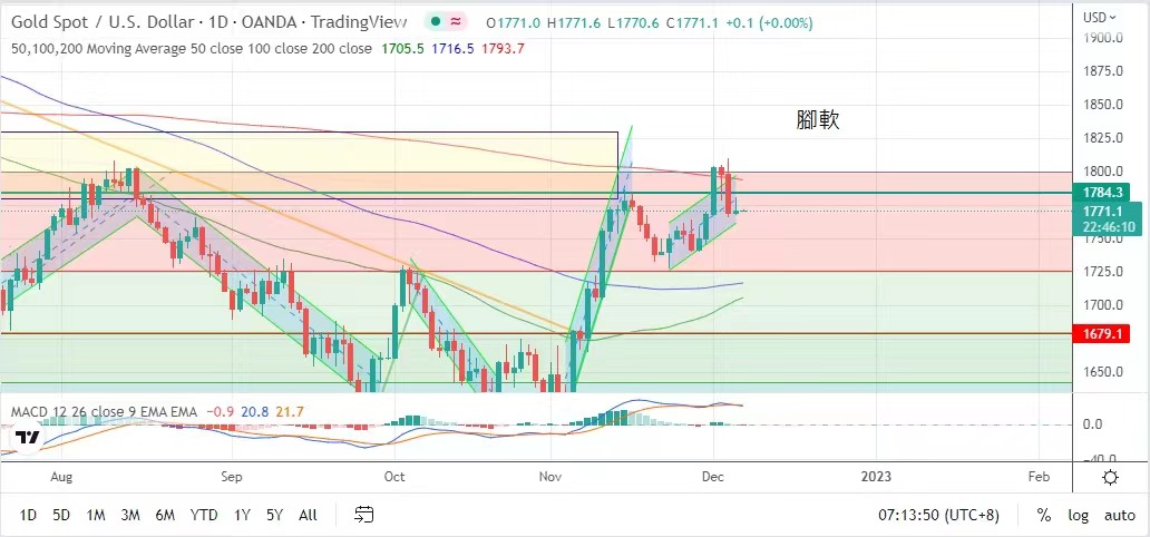 金價昨日最高見1780.9美元,但明顯上有壓力,金價最低見1767.4美元,最後以1771美元收市,升2.2美元。
