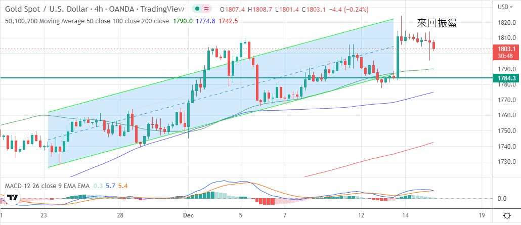 爾在發言時亦暗示息率峰值仍有上調的可能,金市曾跌穿1800美元,但低位見支持,金市在年底到臨前預期在18