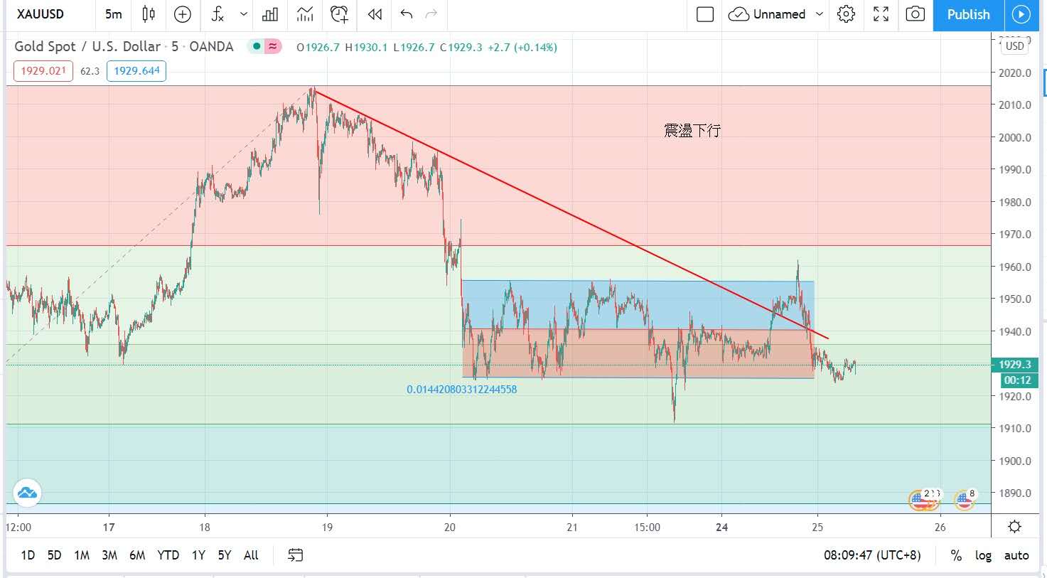 最後報每盎司1929美元收市。
